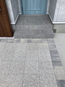 玄関アプローチをインターロッキングで仕上げ、歩きやすさとデザイン性を両立。モダンな雰囲気を演出し、住まいの第一印象を引き立てました。 |