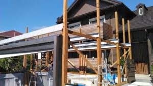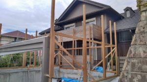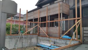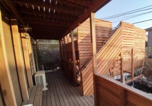 デッキを支える大梁には鉄骨を採用し、安全性・強度・耐久性を確保。アプローチは階段だったものをスロープへ変更し、ベビーカーや自転車の出入りがしやすいバリアフリー動線を実現しました。