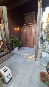 さらに、リフォーム前はレンガ調エントランスだった玄関内外を600角の石材調大判タイルへと刷新し、モダンで上質な印象に。車庫には電動シャッターを採用し、利便性と防犯性も向上しています。