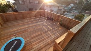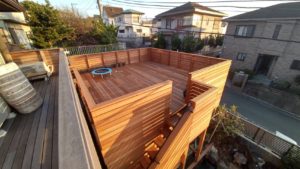 先ずは壊しっぱなしとなっていたコンクリートの壁をしっかりと補強し丁寧に整え、メインとなる天然木デッキには耐久性の高いイペ材を採用し、素足でも心地よい質感と経年変化を楽しめる風合いを実現。広々としたデッキからは湘南の海を望むことができ、日常の中で海を感じながらくつろげる贅沢なアウトドアリビングが完成しました。また、お母様のご趣味であるガーデニングを楽しめるよう、日当たりや動線にも配慮した設計としています。